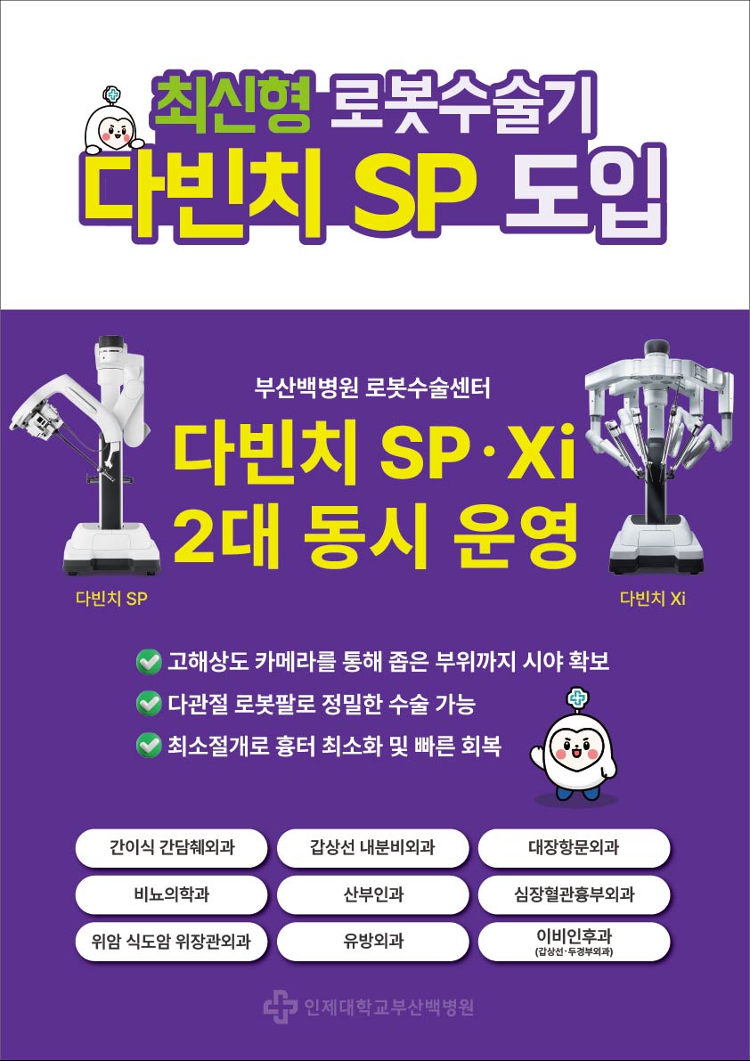 부산백병원 로봇수술센터, 다빈치 SP·Xi 2대 동시 운영