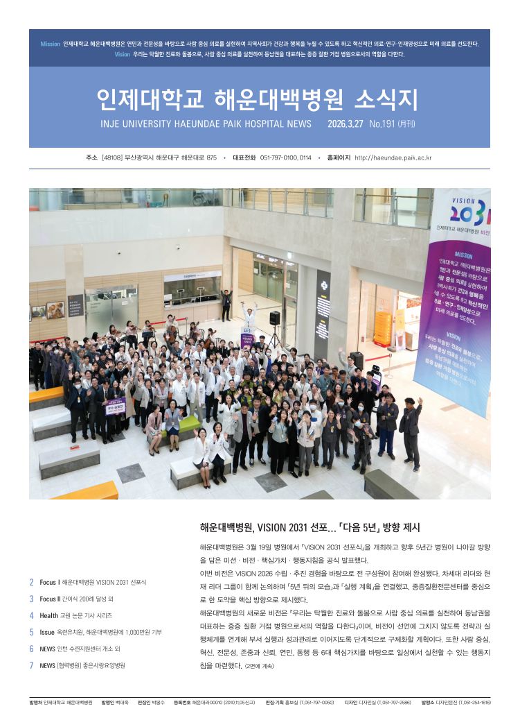 해운대백병원, VISION 2031 선포… 「다음 5년」 방향 제시