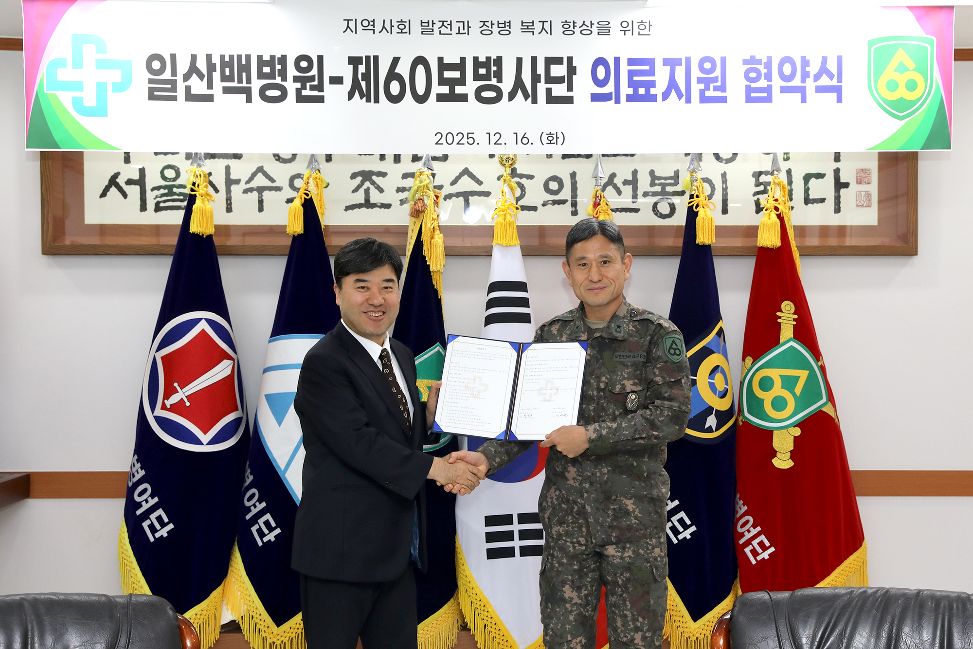 인제대학교 일산백병원(원장 최원주)은 12월 16일 육군 제60보병사단(사단장 이명철)과 군 장병 및 부대원 건강 증진을 위한 의료지원 업무협약(MOU)을 체결했다.