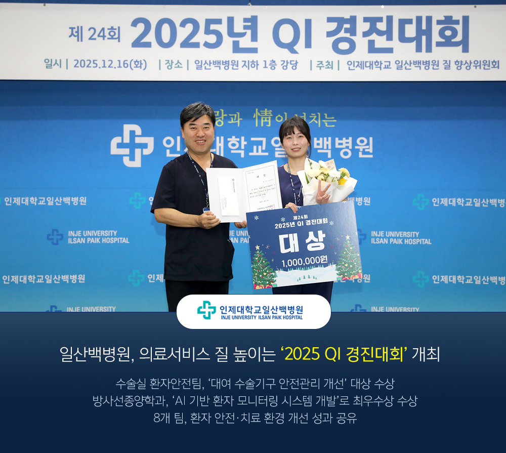 최원주 원장은 “병원의 존재 가치는 환자 안전과 환자 중심 치료에 있다”며 “이번 QI 경진대회를 통해 그 가치를 다시 한번 확인할 수 있었다. 앞으로도 현장의 작은 개선들이 지속적으로 이어질 수 있도록 적극적으로 지원하겠다”고 말했다.