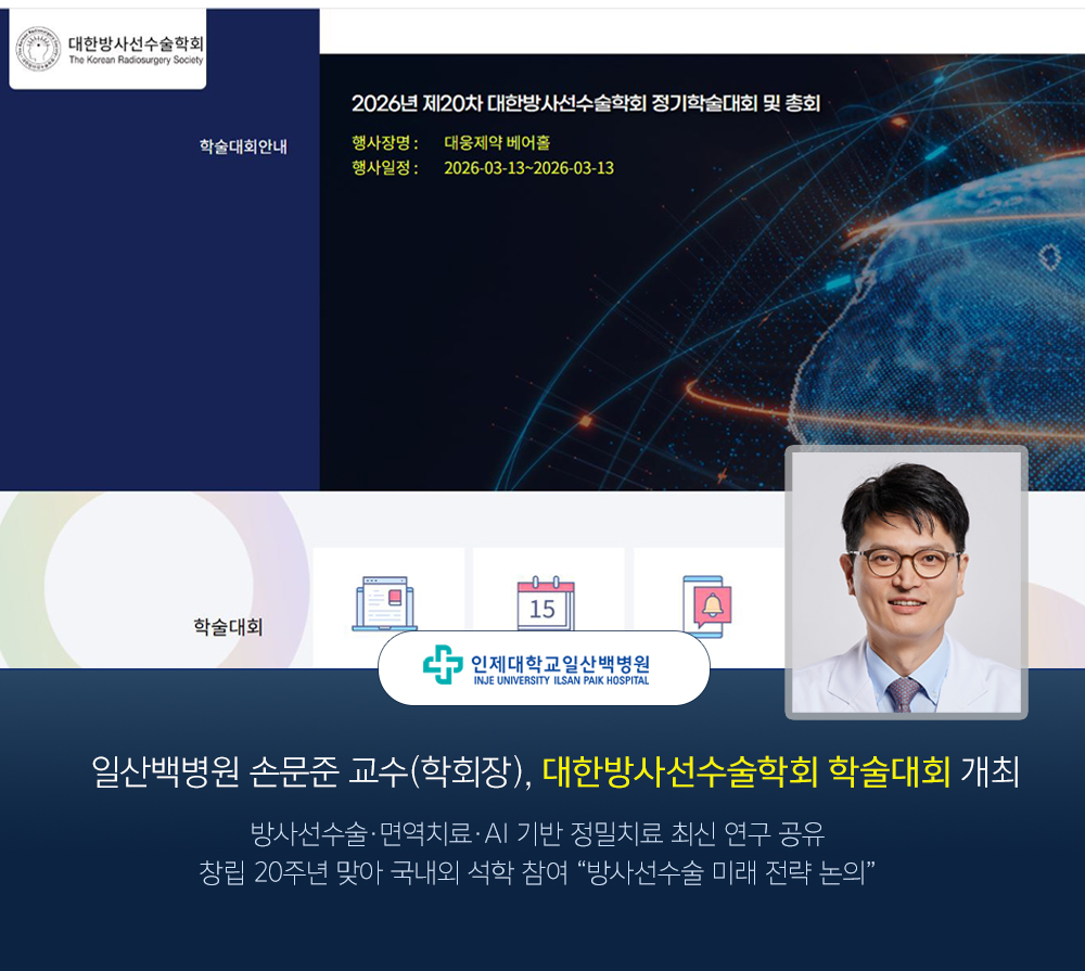 인제대학교 일산백병원 신경외과 손문준 교수가 회장을 맡고 있는 대한방사선수술학회(Korean Radiosurgery Society, KRS)가 오는 3월 13일 서울 강남 베어홀(Bear Hall)에서 ‘제20차 정기학술대회’를 개최한다.