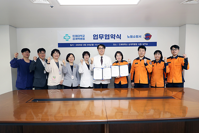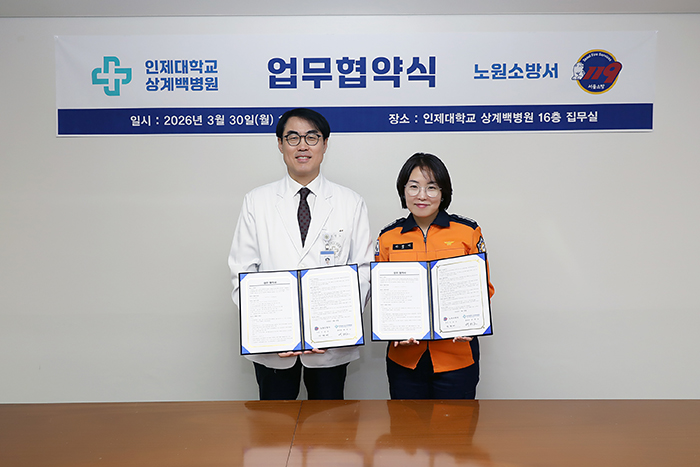 인제대학교 상계백병원(원장 배병노)은 3월 30일 본관 16층 집무실에서 노원소방서와 ‘중증응급환자 1차진료권 보장을 위한 업무협약’을 체결했다.
